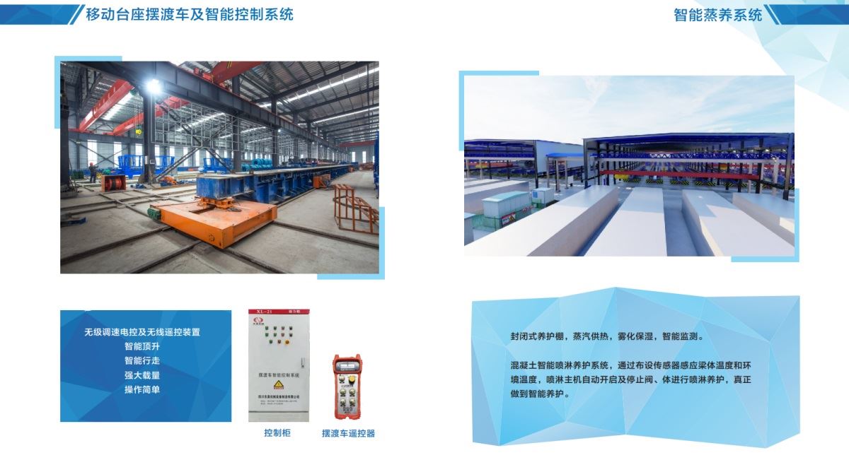 對(duì)生產(chǎn)中的重復(fù)性工作進(jìn)行標(biāo)準(zhǔn)化施工:將傳統(tǒng)的固定式臺(tái)座施工升級(jí)為流水線作業(yè),整個(gè)生產(chǎn)過(guò)程形成智能環(huán)形生產(chǎn)線,使勞動(dòng)力和機(jī)械設(shè)備得到充分利用,每條智能環(huán)形生產(chǎn)線可配備4個(gè)移動(dòng)臺(tái)座,平均1天就能出1片梁,極大地提升了生產(chǎn)效率。