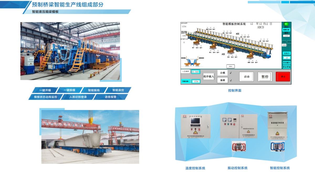 生產(chǎn)過(guò)程的自動(dòng)化和智能化:通過(guò)自動(dòng)化液壓模板、一鍵開(kāi)模、一鍵脫模、智能振搗、智能溫控、遠(yuǎn)程監(jiān)控、人臉識(shí)別登錄、語(yǔ)音報(bào)警、無(wú)線遙控、智能頂升、智能行走、智能監(jiān)測(cè)等生產(chǎn)過(guò)程中各個(gè)階段的自動(dòng)化和智能化實(shí)現(xiàn)生產(chǎn)線的智慧化。