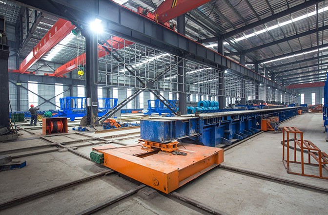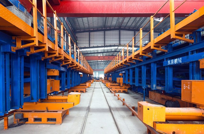 生產(chǎn)要素相對(duì)集中:將鋼筋綁扎區(qū)、模板澆筑區(qū)、養(yǎng)護(hù)區(qū)、張拉壓漿區(qū)等環(huán)節(jié)集中設(shè)置,使鋼筋綁扎、合模、混凝土澆筑、拆模、養(yǎng)護(hù)等都能在同一廠房?jī)?nèi)進(jìn)行,大大優(yōu)化了生產(chǎn)要素配置和生產(chǎn)力空間布局,且不受氣候等環(huán)境影響,實(shí)現(xiàn)了“多、快、好、省”的生產(chǎn)經(jīng)營(yíng)目標(biāo)。