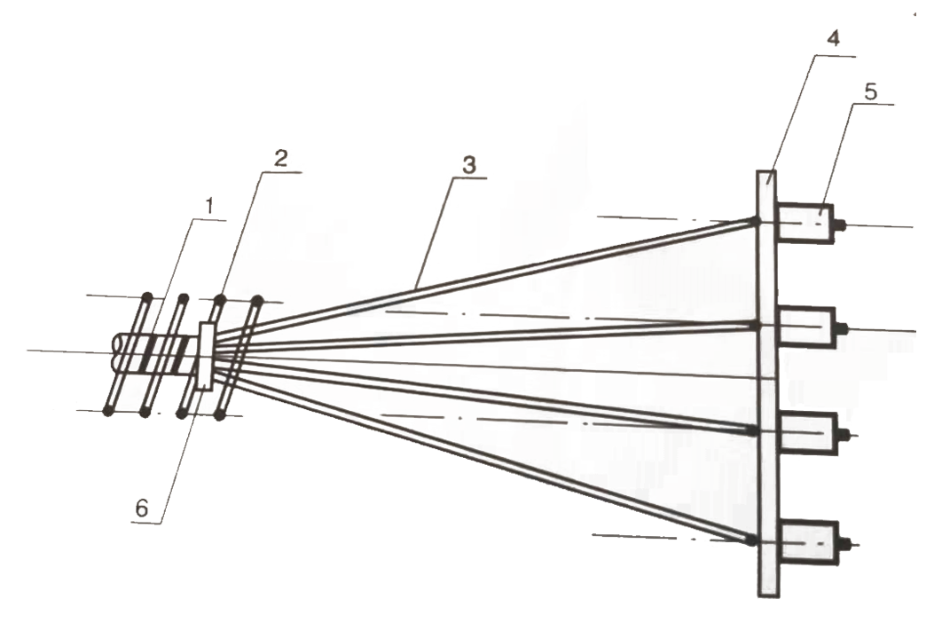 1、波紋管     2、螺旋筋    3、鋼絞線    4、固定端墊板    5、擠壓錨    6、約束環